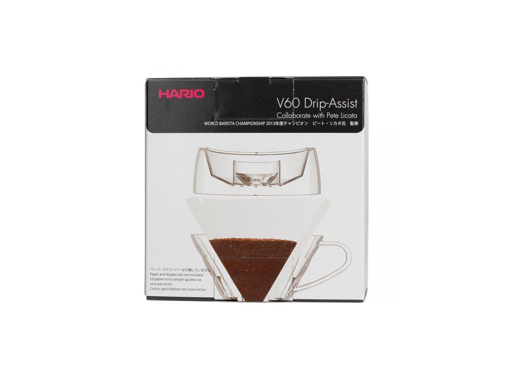 Drip-Assist je vyrobený z kvalitného polyméru, ktorý je bezpečný pre kontakt s potravinami. Má otvory dvoch veľkostí - tie s väčším priemerom v strednej časti a menšie na vonkajšej strane. Väčšie otvory umožňujú rýchly prietok vody, čo sa odporúča najmä pri preinfúzii, zatiaľ čo vonkajšie otvory umožňujú pomalý prietok vody. Voda prúdi do strednej časti, keď je vonkajší prstenec plný, čo chráni používateľa pred vyliatím rozliatej vody.