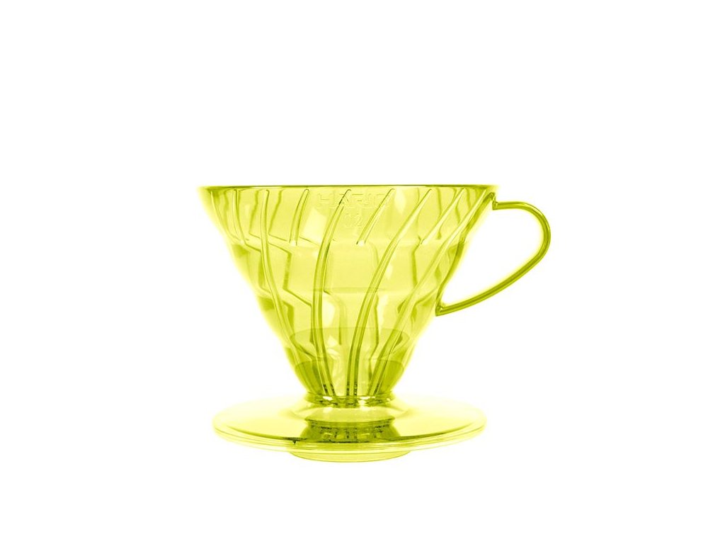 Základný typ dripperu V60, vyrobený z transparentného plastu. Vhodný pre prípravu 1-4 šálok kávy. Maximálne množstvo kávy, ktoré máme vyskúšané, je 60g - 1 liter pripravenej kávy.